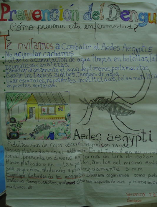 A raíz del intercambio con científicos y con apoyo de los profesores, los alumnos elaboraron afiches educativos que incluían una serie de medidas para prevenir el dengue.