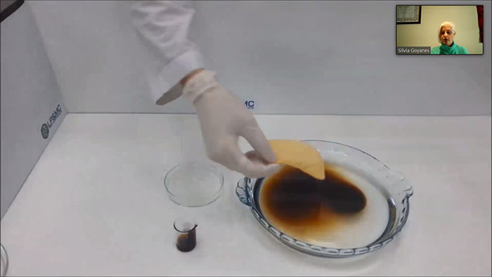 Su laboratorio también creó PAbs 50, un paño para la remoción selectiva de hidrocarburos en agua y cuyo desarrollo recibió un premio INNOVAR 2017 en la categoría “Producto y Diseño Innovador”. “Esta tecnología podría servir para el tratamiento de derrames”, explicó Goyanes.